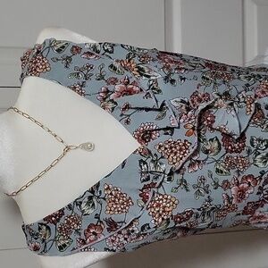 Teeze Me Ruffled Neck Faux Wrap Fully Lined Floral Back Zip Dress - Size 7