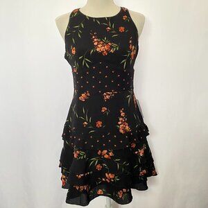 Teeze Me floral and dots dress with tie and zipper in back. It has layered ruffles on the bottom. Summer...cute...party...casual wear. NWT...size juniors...no flaws noted. See photos for care details...012921