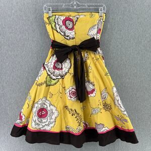 Teeze Me Strapless Retro Style A-Line Sundress Flowy Yellow Floral Jr Women Size 3