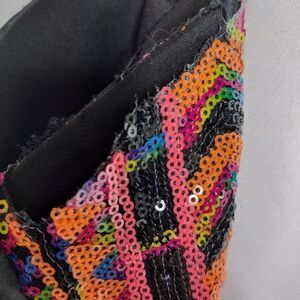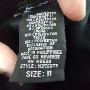 sequined bodice and tule covered skirt. zip back, the sides by the armpit have sequined area missing, since it is the same on both side, I am thinking it is part of the design. pit to pit 17". satin tie belt is missing length 27"