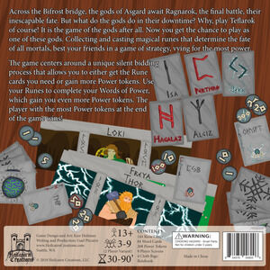 Teflarok: Game of the Gods is a brand-new board game inspired by Norse mythology. Play as one of nine Norse gods, collecting magical Runes and Power tokens through a unique silent bidding system to create powerful Words of Power. Designed for 2-9 players (with 2-player variants), this strategic game offers 30-90 minutes of immersive gameplay. Perfect for ages 13+, it’s an ideal addition to game nights with family or friends. With deep strategy, replayability, and a rich mythological theme, Teflarok is a must-have for board game enthusiasts. Brand new and unused, ready for your next adventure.