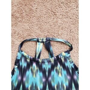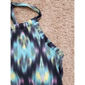 Tehama Athletic Strappy Halter Watercolor Geo Stretchy Mini Dress, Size Medium