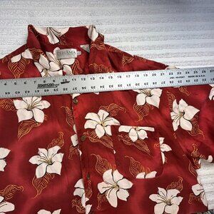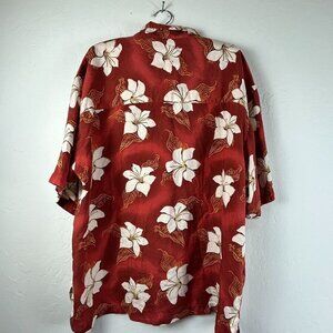 Tehama Clint Mens 100% Silk Red Gold Floral Hawaiian Shirt Size XXL Short Sleeve
