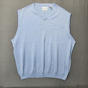 Tehama Mens Sweater Vest XXL Blue Tencel Merino Wool Blend Preppy Office Vintage