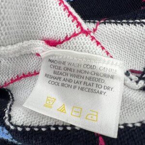 Tehama Nancy Haley M Argyle Knit Top Blue White Preppy Academia Golf 90s