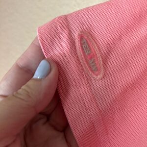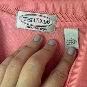 Elevate your casual wardrobe with this short-sleeve pink/coral golf polo shirt by Tehama. Perfect for any occasion, this top offers both comfort and style. Technologically advanced fabrics and unique construction details maximize comfort. “Hang ‘em Dry” line means no iron needed!