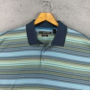 Tehama Shirt Adult XL Blue Green Striped Pima Cotton Knit Polo Logo Rugby Mens