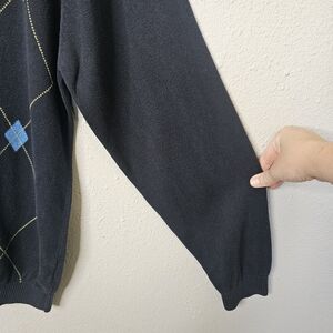 Tehama Silk Cashmere Blend Mens Argyle Sweater Size Large Navy Blue V Neck