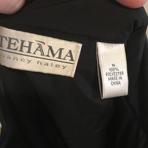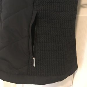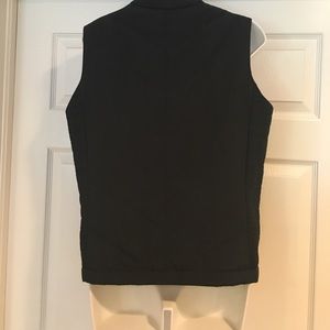 Tehama black quilted vest. Has zipper pockets on each side. Has fun crinkle design on each side. Has two zippers on the front. One zips from the top the other zips from the bottom. In great condition. 100% polyester. Size Medium. No snags tears or stains..