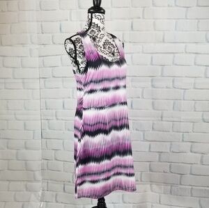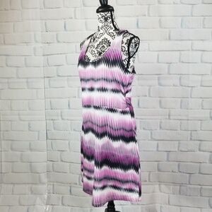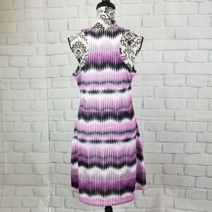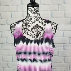 This is a women's stretch knit sleeveless geometric print dress that comes in a size large by Tehama