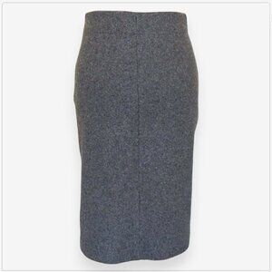 DETAILS: Side zip closure. Fitted pencil or straight style with notch slit front. Soft charcoal gray wool blend knit.