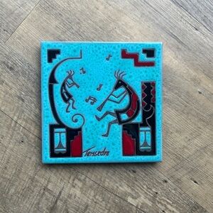 Teissedre Kokopelli Flute Player Tile Trivet Cleo Southwestern Pueblo Vintage