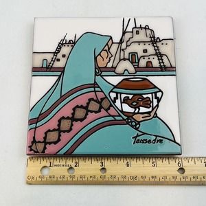 Teissedre Native Woman Pot Basket Decorative Art Tile Home Decor Trivet Coaster