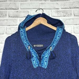 Tejidos 100% Alpaca Royal Blue Southwestern Sweater Hooded Aztec Buttery Soft