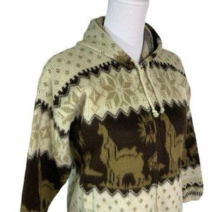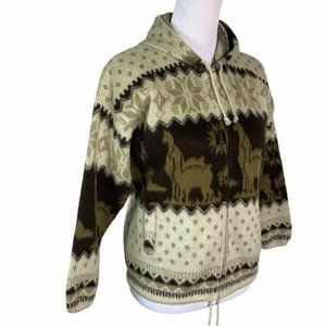 Tejidos Aly Marka Brown Wool Alpaca Zip Up Hooded Lama Nordic Sweater Womens 10