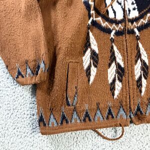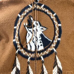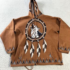 Tejidos Ruminahui Jacket Mens Large Brown Sweater Wool Wolf Dreamcatcher Hooded