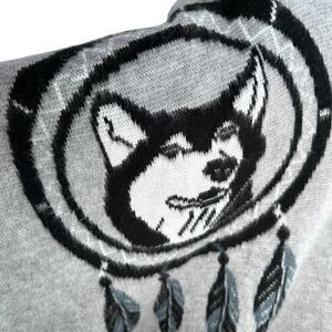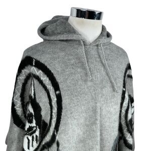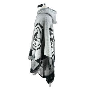 Tejidos Ruminahui Wolf Dreamcatcher Alpaca Wool Poncho Hoodie Mens XL Gray Black