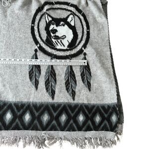 Ruminahui Wolf Dreamcatcher Poncho Hoodie Mens XL Gray Black Drawstring Pullover