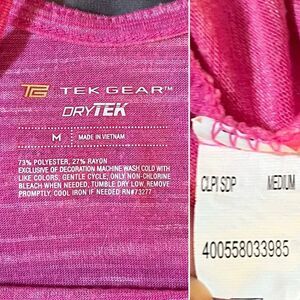 Tek Gear Athletic Short Sleeve Criss Cross Back Tee Moisture Wicking Hot Pink Size Medium. Sporty style women's Tek Gear top. Crisscrossed back. Dry Tek moisture-wicking technology. Banded elastic hem. Scoop-neck
