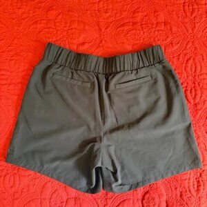 Pull on short with elastic waistband. Front side slit pockets, two slit back pockets.