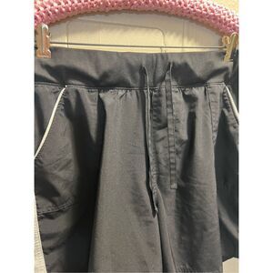Two gear black with white stripe shorts. Woman’s size XL. FLAWED-some stitching starting to come apart.