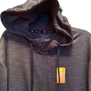 Tek Gear performance fleece jacket with WarmTek technology. Cozy and warm. Stay warm when temperatures drop. Level 2. Draws moisture away to keep you comfortable. Wicking and warm. 100% polyester Size XXL. Color: Grey. Knit exterior with lightweight fleece interior. Two hip pockets. Hood with drawstring. Full zipper front. New with tags. Color is very hard to photograph. Photos show a red pinkish hue which isn’t there. Measurements laying flat: