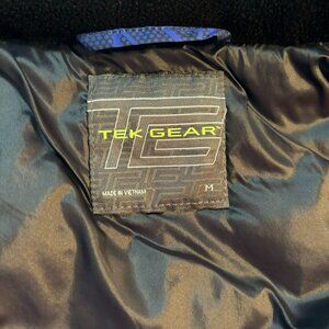 Tek Gear Hooded Full Zip Puffer Vest Blue Black M Medium Cozy Removable Hood