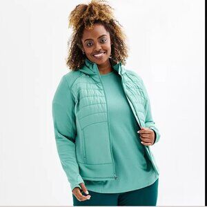 Tek Gear® Hooded Mixed-Media Jacket Plus Size NWT Sage Embossed 1X