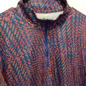Tek Gear Men’s Abstract Print Soft Tek Quarter-Zip Activewear Pullover Size Lg. New with tag. From smoke free home. * model photo to show fit only. Shirt is multicolor, blue/orange/pink.