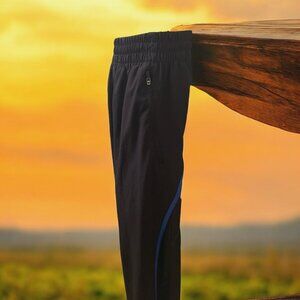 Tek Gear Mens Track Pants Size XL Black Drawstring Waist Blue Stripe Zip Pockets