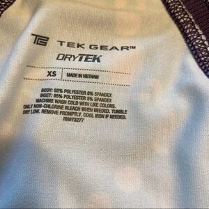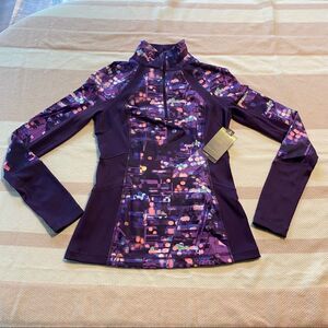 Tek Gear New With Tags 1/4 Zip Athletic Top. Purple tone geo design. Fitted. Thumb holes on sleeve cuff. Size XS. Measures chest 31", length 25", sleeve 26".