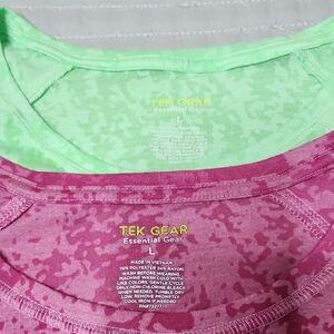 Add a splash of color with these stylish tees. Polyester and rayon. Machine wash and dry. Measurements in photos. EUC. L. Bundle to save! Two tees included!
