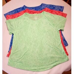 Tek Gear Womens Activewear Top Lot of 3 Sz Large Bold Camo Print Red Blue Green