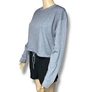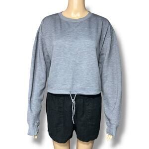 Gray Drawstring Hem Pullover Crop Top Athletic Sweatshirt Tek Gear