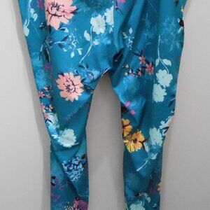 Tek Gear Workout Gear Women's Teal Blue Floral Print Gym Pants-Size 3X
