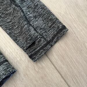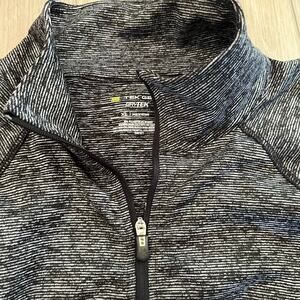 Description: Black and white athletic long sleeve 3/4 zip shirt with thumbholes and zip pockets.