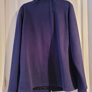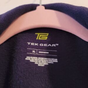 Navy blue colored full zipper jacket by Tek Gear. It has small zipper pocket on the left top. Two pockets on the front. Very soft and warm. In excellent condition. The measurements are: Pit to Pit 25", Length is 33".