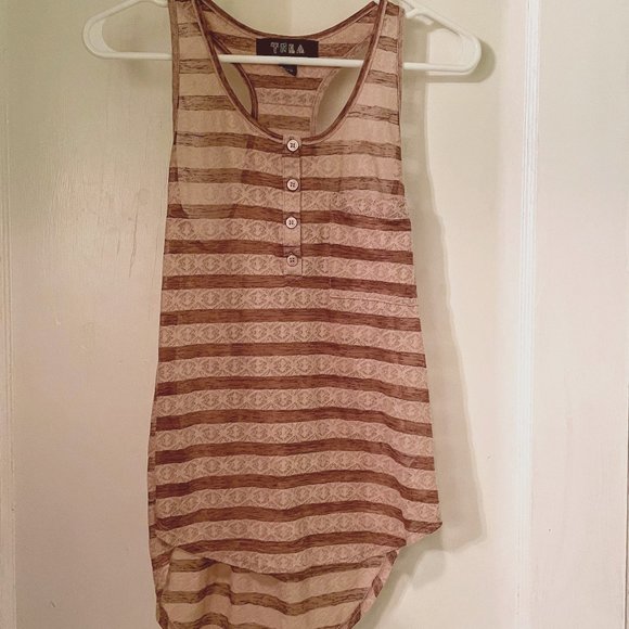 Beautiful brown and cream colored, sheer, lace racerback tank top, Tela brand from Urban Outfitters.