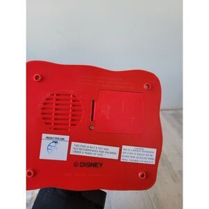 about 21 inches tall by 7 in by 6 in, both hands move and head moves back and forth slowly, has a couple marks but overall still in good condition, left foot is a little loose on the stand, not sure if it's supposed to be like that, no box