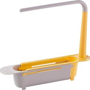 Telescopic Sink Storage Rack,Adjustable Length, Drain Basket Plastic and Sponge