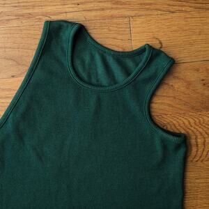 Telfar Cropped Asymmetric Tank in Forest Green, Size S