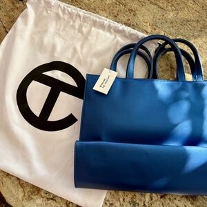 New with tag on Telfar Medium Shopping Bag Cobalt with double straps - cross body and handles. Logo on the front. Zipper Pocket inside.