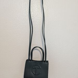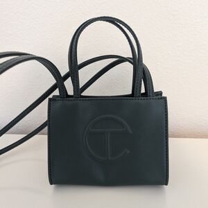 Stylish mini bag by Telfar. Features a sleek dark green color. Iconic logo on the front. Perfect for any occasion.
