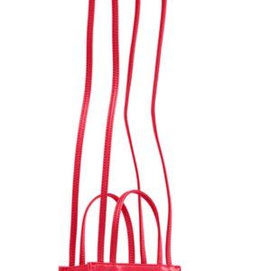 Featuring a double strap (handles and cross-body straps), embossed logo, and magnetic snap closure. Made from faux leather and twill lining. Bag is packaged in a drawstring bag with screen-printed logo.