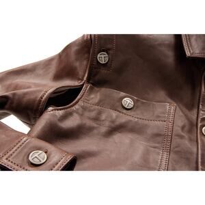 This jacket is made from genuine leather, ensuring both quality and style. The rich chocolate brown color is perfect for adding a touch of warmth and luxury to any outfit.