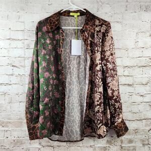 Tell Your Friends Long Sleeve Shirt in Lana Multi Small NWT Silk Button Down