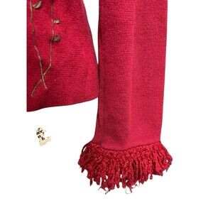 This beautiful red cardigan from Telluride Clothing Co features a mock neck and long fuzzy sleeves. The tight-knit fabric is made from 100% wool and is perfect for all seasons. The solid embroidery pattern adds a touch of charm and the fringe accents, button, and fuzzy sleeves and mock neck make it a perfect choice for travel, weddings, parties, cocktail events, casual outings, or business meetings.