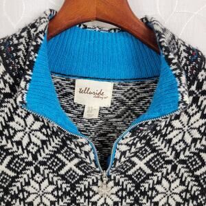 Telluride Kids Sweater Sz XL Black White 1/4 Zip Fair Isle Snowflake Lambs Wool