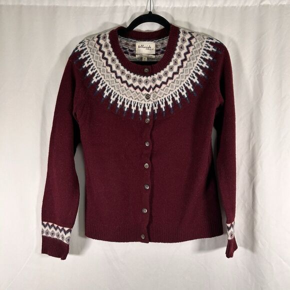 Telluride lambs Wool Cardigan Women's Medium Red White Knit Button Front