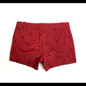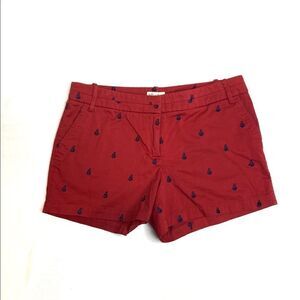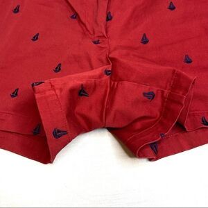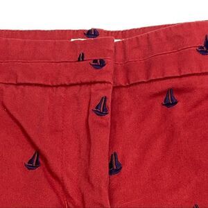 Telluride Clothing Co. red with navy blue embroidered sailboat shorts size 6. Button, hook and zipper closure. Front pockets and back pockets with button closure. Belt loops. Good condition. 97% cotton 3% spandex. Waist 16” Rise 9” Inseam 4”.